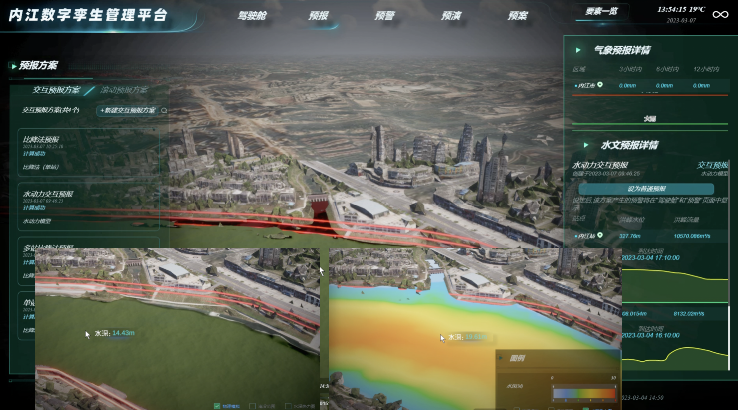 水灾害“四预”数字孪生平台以预报、预警、预演、预案4个模块为核心,实现洪水预报预警、风险评估、优化配置、调度管理等功能,为水利高质量发展提供有力支撑。